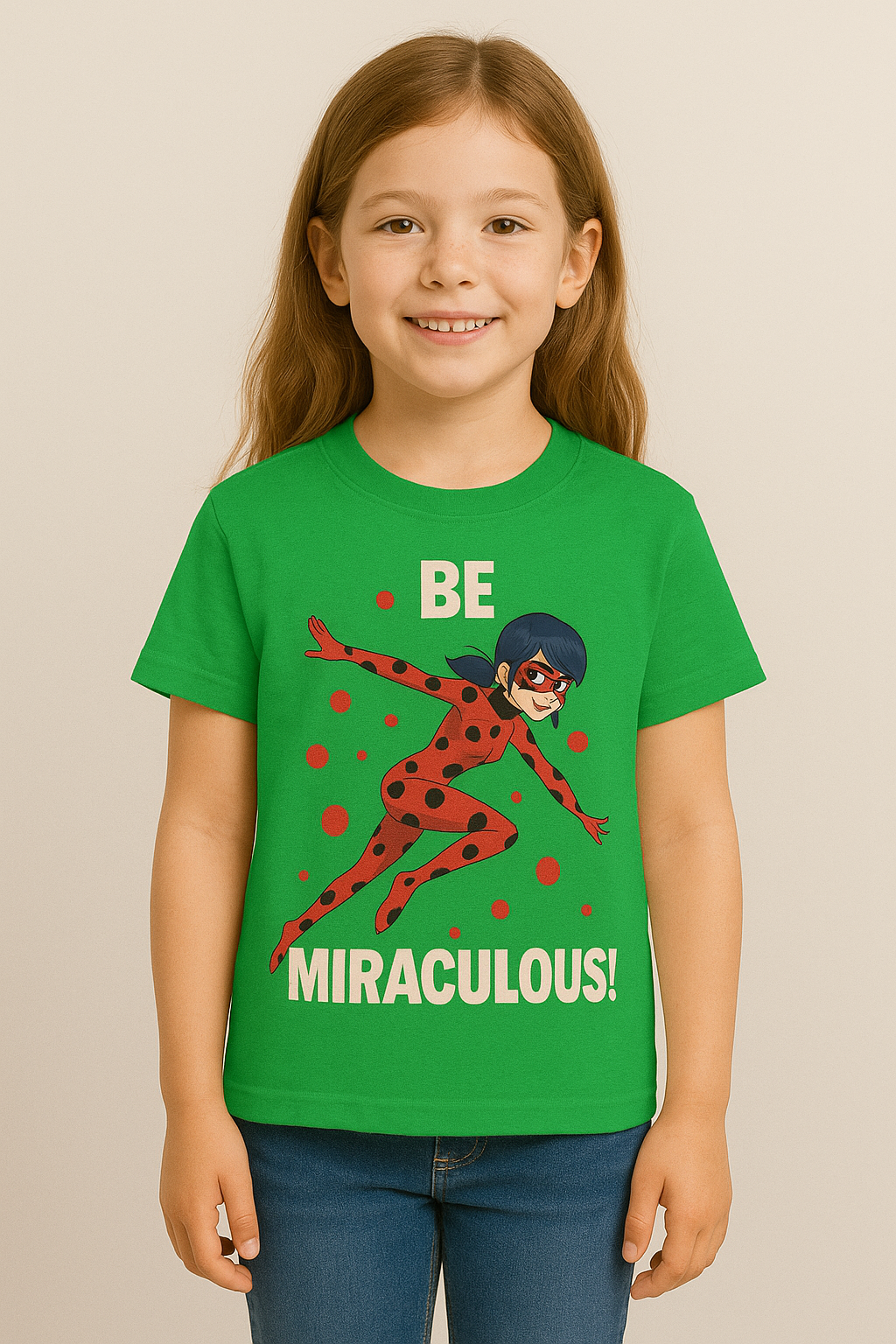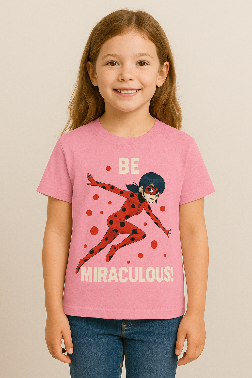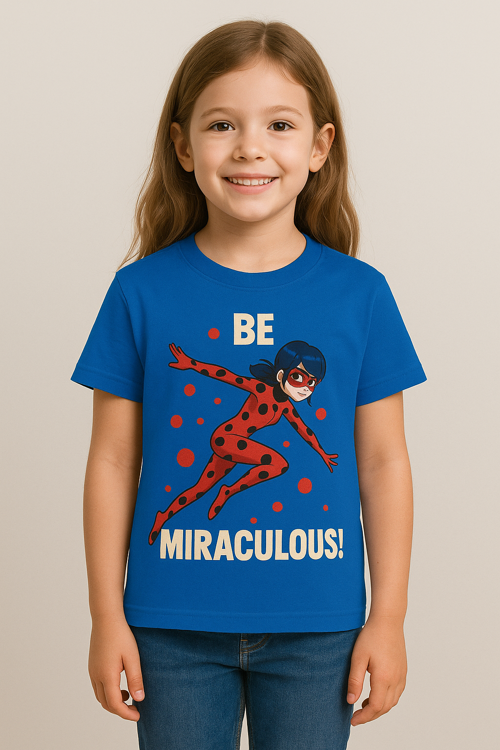 Bold and fun, this “Be Miraculous!” T-shirt features Ladybug from the Miraculous series—perfect for young heroes on the go! Made from soft cotton for all-day comfort.
